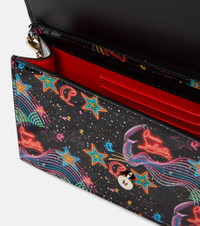 Add a pop of glamour to your after-dark ensembles with Christian Louboutin's Loubi54 clutch, designed in patent leather. This style features a vibrant space-inspired print and comes with a detachable strap for hands-free wear. Product Details - Internal details: internal slot pocket, leather lining, Card slots - Comes with a box - Made in Italy - Designer color name: Black-Multi/Gold - Comes with dust bag - Closure: magnetic fastening - Color of fastening: pale gold - Detachable chain shoulder strap - Material: leather - Item number: P00753251 Size & Fit - Height 12cm-4.5" - Width 22cm-8.5" - Max. depth 5,5cm-2" - Chain length 117cm-46"