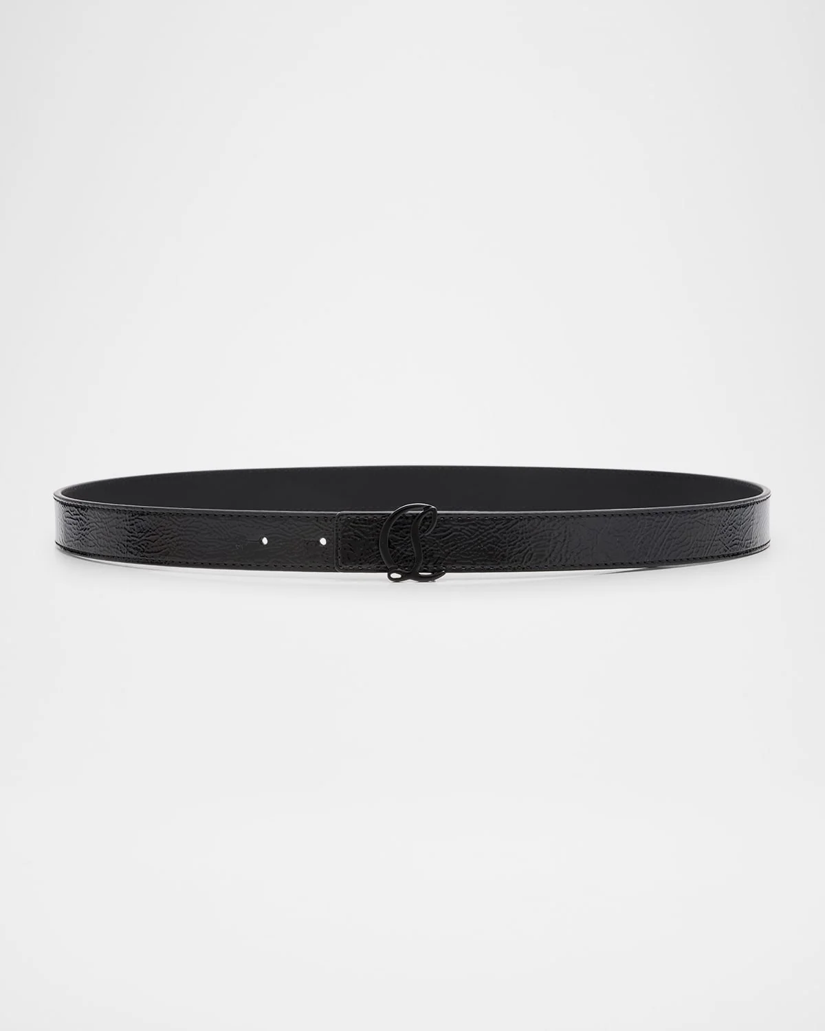 - Christian Louboutin "Loubi54" patent leather belt reverses to smooth leather - Features signature tonal CL buckle - Adjustable fit - Made in Italy