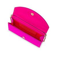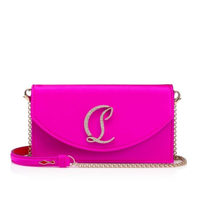 The clean lines of the Loubi54 small clutch exude sophistication. This Maison Christian Louboutin bag comes in a Holly Pink satin crêpe, for a sparkling style. It is finished with a golden CL monogram enhanced with diamantés and can be worn over the shoulder or across the body.- interior flat pocket and card slot- magnetic fastener- removable chain shoulder strap with leather reinforcement- dimensions: 100 x 185 x 40 mm PRODUCT INFORMATION Reference: 1225087P679 Color: HOLLY PINK/GOLD-CRYSTAL Material: Satin Dimensions: 100mm x 185mm x 40mm Collection: Summer 22