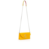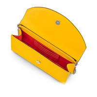 With its sleek lines, the elegant Loubi54 clutch showcases Maison Christian Louboutin's sophistication. This elegant model features a silver CL monogram on the front and is crafted in Supernova yellow crêpe satin. - A removable 44.9 inch/ 114 cm leather-reinforced chain strap allows it to be carried by hand or over the shoulder - Magnetic fastening - 1 inside pocket - 3 credit card slots - Dimensions: H 4.5 x L 8.7 x W 2.4 inches H 12 x L 22 x W 5.5 cm Product information Material: Crepe satin Color: Supernova Reference: 32350855514 Dimensions: 120mm x 220mm x 55mm Collection: Fall Winter 23