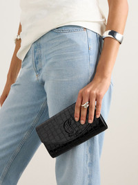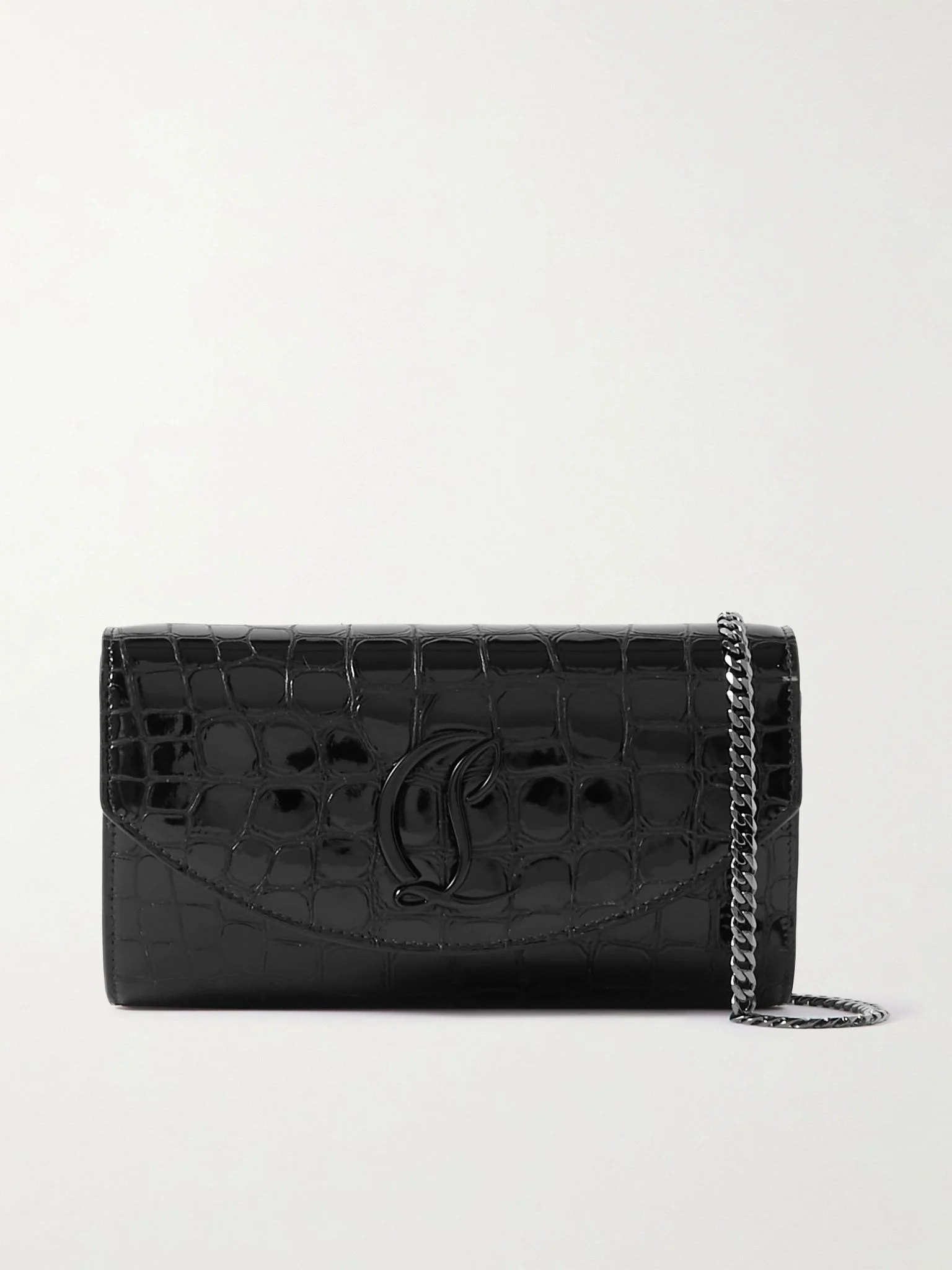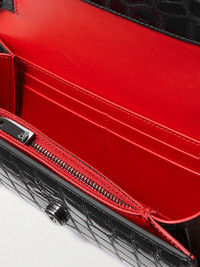 Christian Louboutin updates its 'Loubi54' bag in glossy croc-effect leather for the new season. It's embellished with a tonal designer plaque and opens to a red interior with plenty of card slots and pockets to neatly organize your cards, keys, lipstick and mints. Detach the shoulder strap to carry it in-hand as a clutch. Details & Care - Black croc-effect leather (Calf) - Detachable shoulder strap - Internal patch pocket, zipped pocket and four card sleeves - Fully lined - Magnetic-fastening front flap