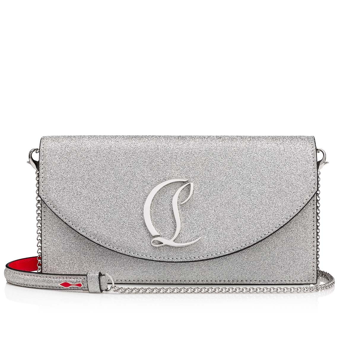 The clean lines of the Loubi54 clutch exude irresistible sophistication. This delicate Maison Christian Louboutin model is designed in Glitter silver calfskin leather, creating a scintillating effect. This timelessly elegant bag features the CL monogram and can be worn over the shoulder or crossbody. - Interior flat pouch and multiple compartments - Magnetic fastening - Removable chain shoulder strap with leather reinforcement Product information Material: Calf leather Color: Silver Reference: 1225251SV71 Dimensions: 4.7 x 8.7 x 2.2 inches Collection: Summer 22
