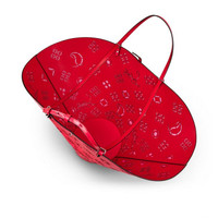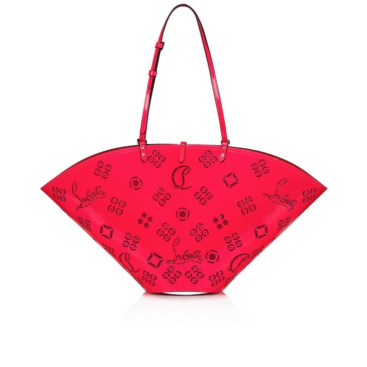 An urban accessory, the Loubifever bag showcases several signature Maison Christian Louboutin details. Entirely created in fluo pink patent pearled calf leather, it features perforations in the iconic Loubinthesky pattern. A sleek accessory with delicate handles and an exquisite finish. - Hook fastening at the top - Adjustable handles, carry by hand or over the shoulder - Dimensions: H 300 x L 520 x W 155 mm Product information Material: Patent calf leather Color: Pink Reference: 1235470P803 Dimensions: 300mm x 520mm x 155mm Collection: Summer 23