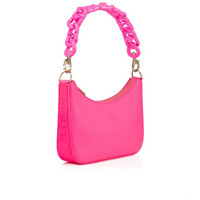 The on-trend Loubila shoulder bag in size mini features urban lines. It has a zip fastening and is entirely crafted in textured fluo pink calf Empire leather. - It can be carried over the shoulder with the lightweight, adjustable aluminum strap - 1 interior zipped pocket - Featuring a Christian Louboutin signature, this model evokes the iconic rubber sneaker sole. - Dimensions: H 130 x L 190 x W 40 mm Product information Material: Calf leather Color: Pink Reference: 1235471P804 Dimensions: 130mm x 190mm x 40mm Collection: Summer 23