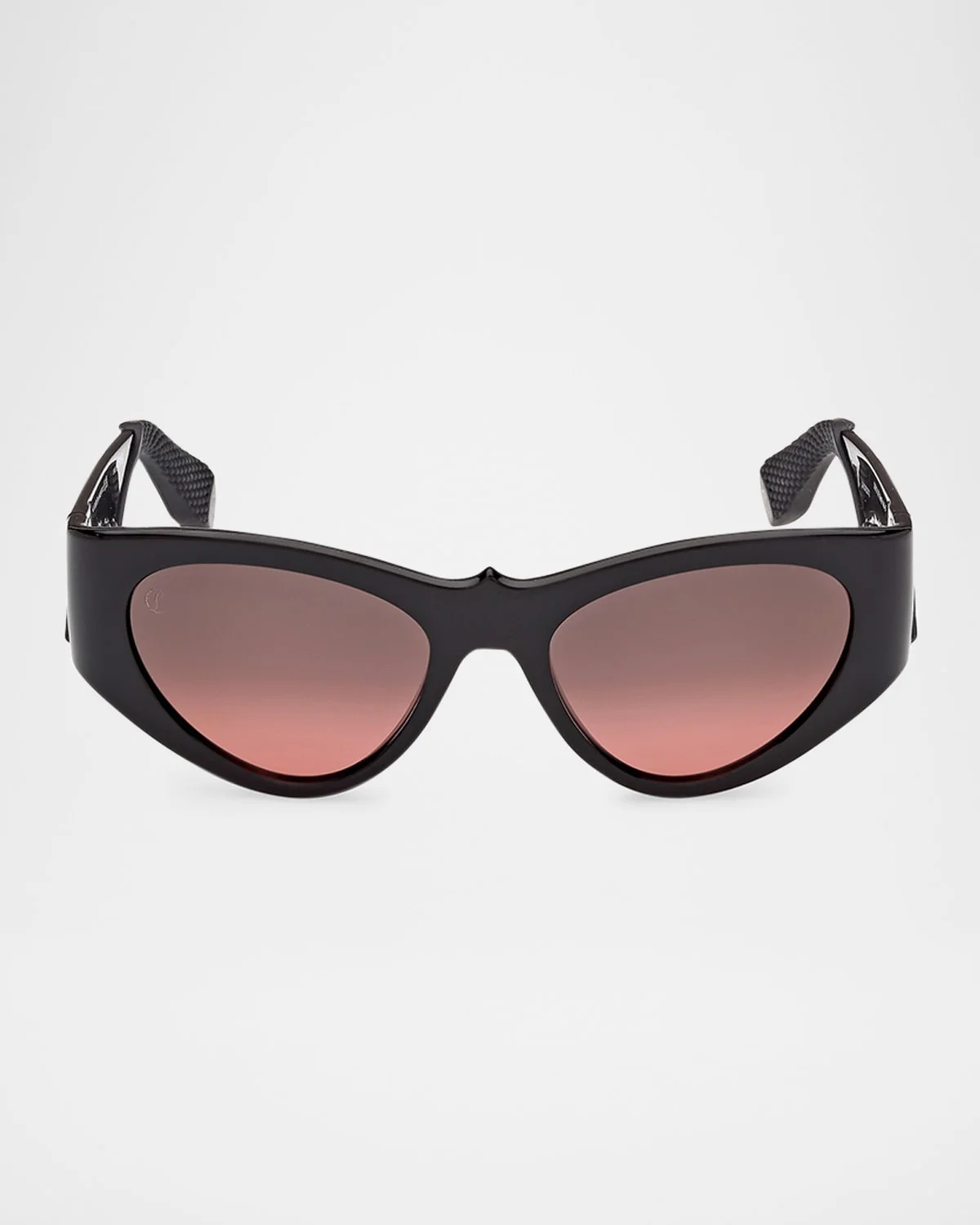 - Christian Louboutin "LB0018W" cat-eye sunglasses in acetate featuring a spike accent above the nose to effortlessly accentuate face features - Loubishark inspired temples add a touch of daring edge - Lens/bridge/temple (in mm): - 54-19-140 - Solid-color lenses - Saddle nose bridge - Signature Loubi red at the inner arms - Acetate - Spot clean - 100% UVA/UVB protection - Made in Italy - Proposition 65 warning for California residents