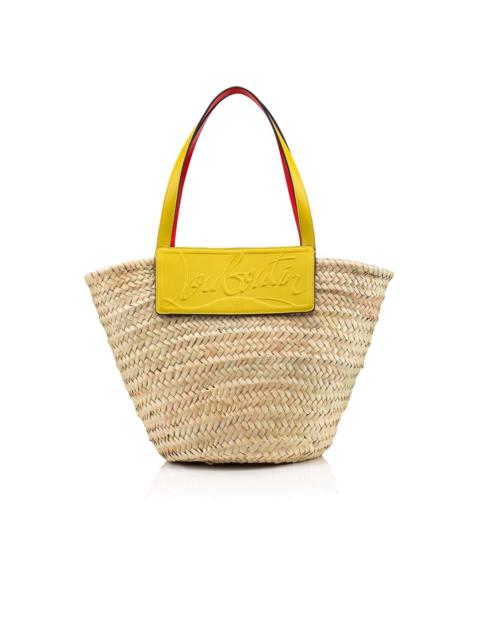 The Loubishore bag is designed around a base of hand woven palm leaves and stands out on account of its boho style. The handles and inset in Citronelle Yellow calfskin leather, featuring the signature of Maison Christian Louboutin, contrast with the natural color. Fitted with a silver-tone clasp, this basket inspired model can be carried over the arm or over the shoulder. - Interior of handles in signature red - Handmade piece, so size may vary - Dimensions: 450 x 300 x 200 mm