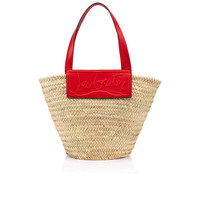 The Loubishore bag is designed around a base of hand-woven palm leaves and stands out on account of its boho style. The handles and inset in red calfskin leather, featuring the signature of Maison Christian Louboutin, contrast with the natural color. Fitted with a silver-tone clasp, this basket-inspired model can be carried over the arm or over the shoulder. - Interior of handles in signature red - Handmade piece, so size may vary - Dimensions: 450 x 300 x 200 mm