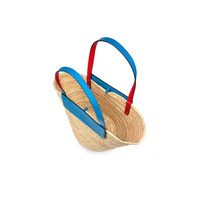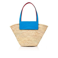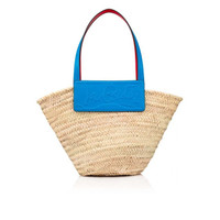 The Loubishore straw bag is made with hand-woven palm leaves and stands out on account of its contemporary style. The handles and Alize blue calfskin insert, which features the Maison Christian Louboutin signature logo, contrast with its natural color. Fitted with a clasp, this basket-inspired model can be carried over the arm or over the shoulder. - inner side of handles in signature red - dimensions: 450 x 300 x 200 mm Each Loubishore is uniquely breaded by hand, its size can therefore slightly differ from the dimensions shared in the description. PRODUCT INFORMATION Reference: 1215220U861 Color: NATUREL/ALIZE Material: Straw Dimensions: 450mm x 300mm x 200mm Collection: Summer 21