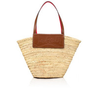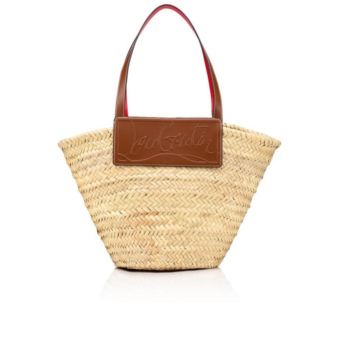 The Loubishore straw bag is made with hand-woven palm leaves and stands out on account of its contemporary style. The handles and nude calfskin insert, which features the Maison Christian Louboutin signature logo, contrast with its natural color. Fitted with a silver clasp, this basket-inspired model can be carried over the arm or over the shoulder. - inner side of handles in signature red - dimensions: 450 x 300 x 200 mm Each Loubishore is uniquely breaded by hand, its size can therefore slightly differ from the dimensions shared in the description. PRODUCT INFORMATION Reference: 1215220C703 Color: NATUREL/NUDE 5 Material: Straw Dimensions: 450mm x 300mm x 200mm Collection: Summer 21
