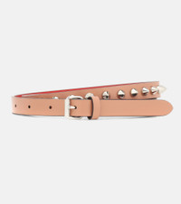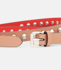 Tap Christian Louboutin's feminine approach to counter-culture tropes with this dusty-pink Loubispikes bracelet. It’s crafted in Italy with a slender leather strap that winds twice around the body, then embellished with silver-tone studs. - material: leather - internal details: leather lining - colour of fastening: silver - Made in Italy - comes with dust bag - Designer colour name: Coutisane/Silver
