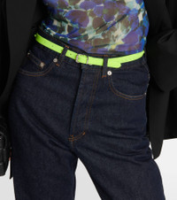 Christian Loboutin’s Loubispikes belt will add a fun yet tough-luxe finish to your look. The design is crafted from neon yellow rubber and features signature studs. Product Details - Closure: buckle fastening - Comes with dust bag - Comes with a box - Made in Italy - Item number: P00777007 Size & Fit - Width 1,5cm-0.5" - Buckle width 2cm-1"