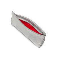 The Loubitwist clutch in size small has a twisted shape, showcasing Maison Christian Louboutin's creativity. It is crafted in glitter silver leather and is the ideal complement to any urban or evening look. - Can be carried by hand or over the shoulder with the slim strap - Zipped compartment with two card slots - Dimensions: H 145 x L 220 x 45 mm Product information Material: Calf leather Color: Silver Reference: 1235044SV20 Dimensions: 5.7 x 8.7 x 1.8 inches Collection: Summer 23