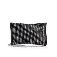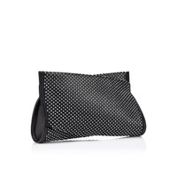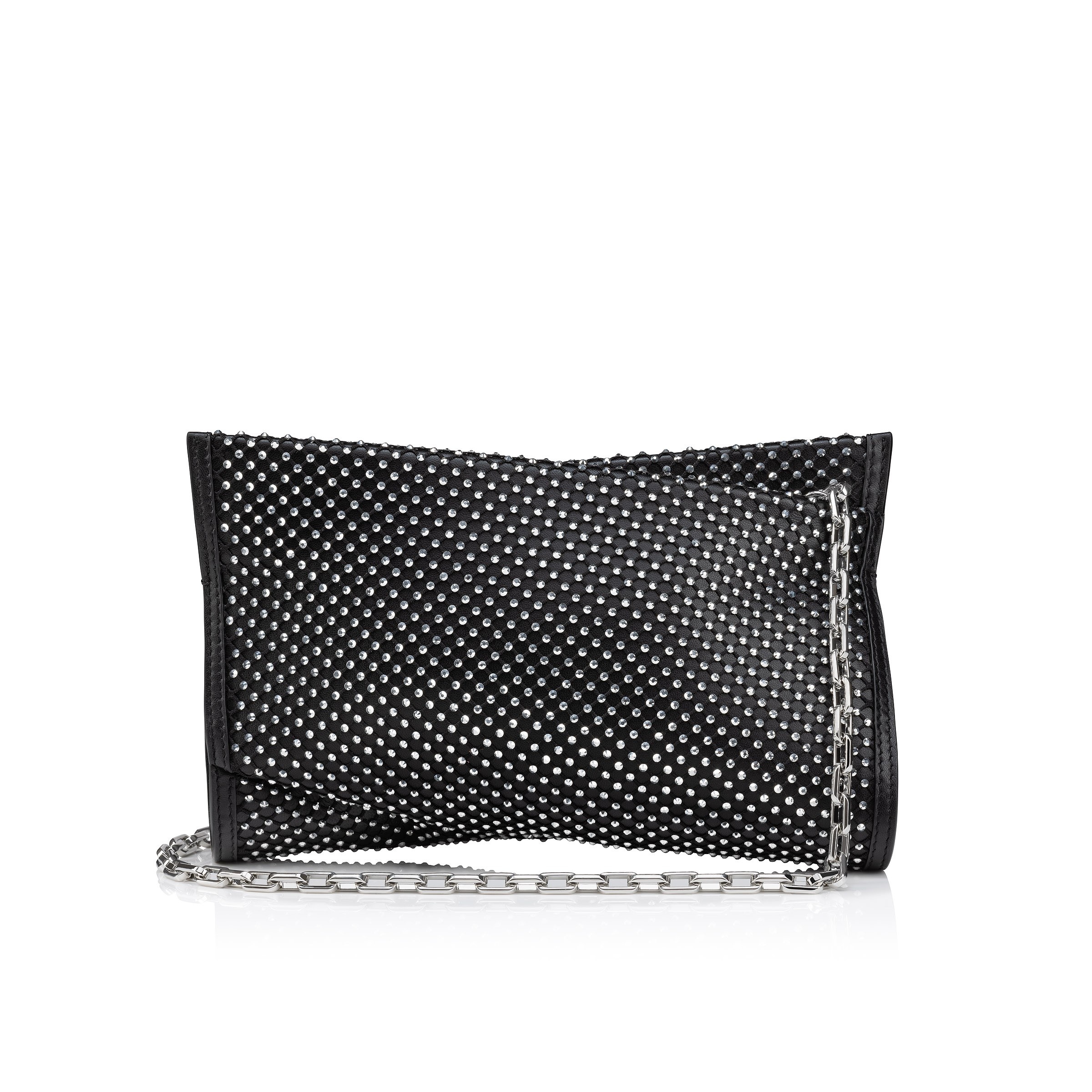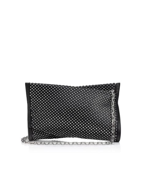 The Loubitwist clutch in size small has an innovative twisted bow shape, showcasing Maison Christian Louboutin's creativity. This on-trend, urban style is crafted in black nappa leather, and mesh adorned with shimmering silver strass. - A detachable chain strap allows it to be carried by hand or over the shoulder - Zipped compartment with 2 credit card slots - Dimensions: H 5.7 x L 8.5 x W 1.7 inches Product information Material: Nappa leather Color: Black Reference: 3245069H801 Dimensions: 5.7 x 10.2 x 2 inches Collection: Fall Winter 24