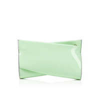 The Loubitwist clutch in size small has a twisted shape, showcasing Maison Christian Louboutin's creativity. It is crafted in Studio green patent leather and is the ideal complement to any urban or evening look. - Can be carried by hand or over the shoulder with the slim strap - Zipped compartment with two card slots - Dimensions: H 145 x L 220 x 45 mm PRODUCT INFORMATION Reference: 1235043E558 Color: Green Material: Patent calf leather Dimensions: 145mm x 220mm x 45mm Collection: Summer 23