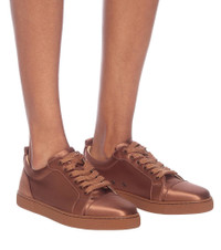 Christian Louboutin can’t help but inflect every silhouette with an elevated sense of luxury – and the Louis Junior sneakers are a case in point. Made in Italy from brown silk satin, they’re modeled on a traditional tennis-shoe silhouette, yet set on the designer’s signature red-bottom soles. - upper: satin - lining: leather - sole: leather insole, rubber sole - round toe - lace-up - Made in Italy - Designer colour name: Nude 6