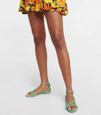 The Mafaldina Spikes sandals from Christian Louboutin x Mytheresa’s Exclusive Summer Capsule are embellished with tonal Lou spikes for iconic recognition. They’re made from pastel green patent leather with slightly stacked heels for all-day comfort. Product Details - Toe shape: round open toe - Closure: buckle-fastening ankle strap - Sole: leather insole and sole - Lining: calf leather - Made in Italy - Comes with dust bags - Designer color name: Detox - exclusive to mytheresa.com - Trim: calf leather - Upper: calf leather - Comes with a box - Item number: P00691739 Size & Fit - True to size - Slightly wide - European sizes - 1,5cm-0.5" heel (size EU 38)