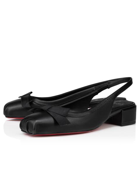 The timeless Mamaflirt Sling pump enchants with its elegant appeal. Crafted in black leather, this Maison Christian Louboutin pump sits on a 30 mm heel and reveals the back of the foot. This model features a low-cut vamp, square toe and bow on the upper for an elegant touch. Product information Material: Nappa leather Color: Black Reference: 1240794B439 Heel height: 30 mm Collection: Summer 24