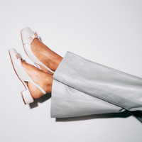 The Mamaflirt Sling ballerina pump elegantly outlines the foot with a square low-cut vamp and a contrasting curvy bow detail on the upper. This reworked version of Maison Christian Louboutin’s supple Mamadrague ballerina features a 30 mm block heel and meticulous topstitching. It is crafted in all-over soft Leche beige leather for a sophisticated finish. Product information Material: Nappa leather Color: Leche Reference: 1240794F608 Heel height: 30 mm Collection: Summer 24