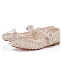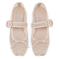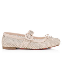 The Maison Christian Louboutin Mamstrapitina ballerina flat offers a combination of timeless grace and edgy style to complement any outfit. Featuring striking mesh adorned with shimmering strass to dress them up and offer enhanced support, these flats exude sophistication. Crafted in Leche beige and adorned with a decorative bow, these ballerinas are complete with the iconic Loubi red sole, epitomizing understated glamor. Product information Reference: 3240237F758 Color: Leche Material: Mesh Collection: Fall Winter 24