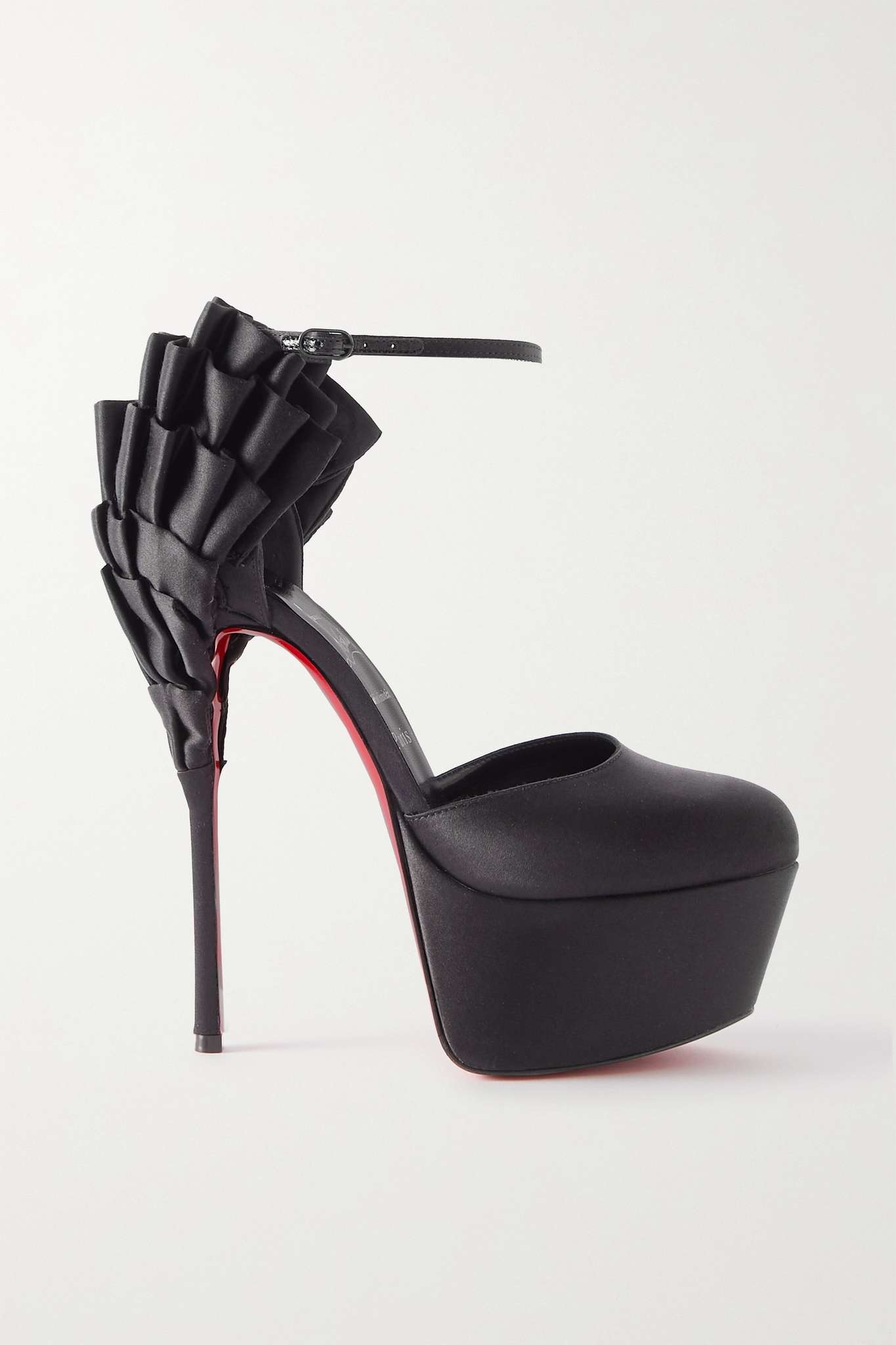 EDITORS'NOTES Christian Louboutin collaborated with actress Rossy de Palma to create a limited-edition collection that honors the vivacious flamenco culture of Andalusia. These 'Maria Frou Alta' pumps are made from lustrous satin that's ruffled at the heels and set on towering platform soles. SIZE & FIT - Fits true to size, take your normal size - Italian sizing DETAILS & CARE - Heel measures approximately 160mm/ 6.5 inches - Black satin - Buckle-fastening ankle strap