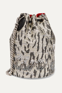 EDITORS'NOTES Christian Louboutin's statement 'Marie Jane' bucket bag has been meticulously made in Italy from lustrous metallic tweed featuring contrasting leopard spots. It's embellished with light-catching crystals in the shape of the house's logo and has drawstring ties and a leather-trimmed chain strap that can be easily adjusted. The red interior is a nod to the iconic red soles.<br><br>Shown here with: [AGOLDE Jeans id1176667], [Attico Pumps id1183836], [SAINT LAURENT Earrings id1112231], [Charlotte Chesnais Rings id1110080], [Jennifer Fisher Ring id1117788]. SIZE & FIT This item's measurements are: - Min. Strap Length: - 67cm - / 26.4in - Depth: - 14cm - / 5.5in - Max. Strap Length: - 117cm - / 46.1in - Height: - 19.5cm - / 7.7in - Width: - 21cm - / 8.3in DETAILS & CARE - Multicolored tweed, red and black leather (Calf) - Drawstring top - Weighs approximately 1.8lbs/ 0.8kg - Made in Italy