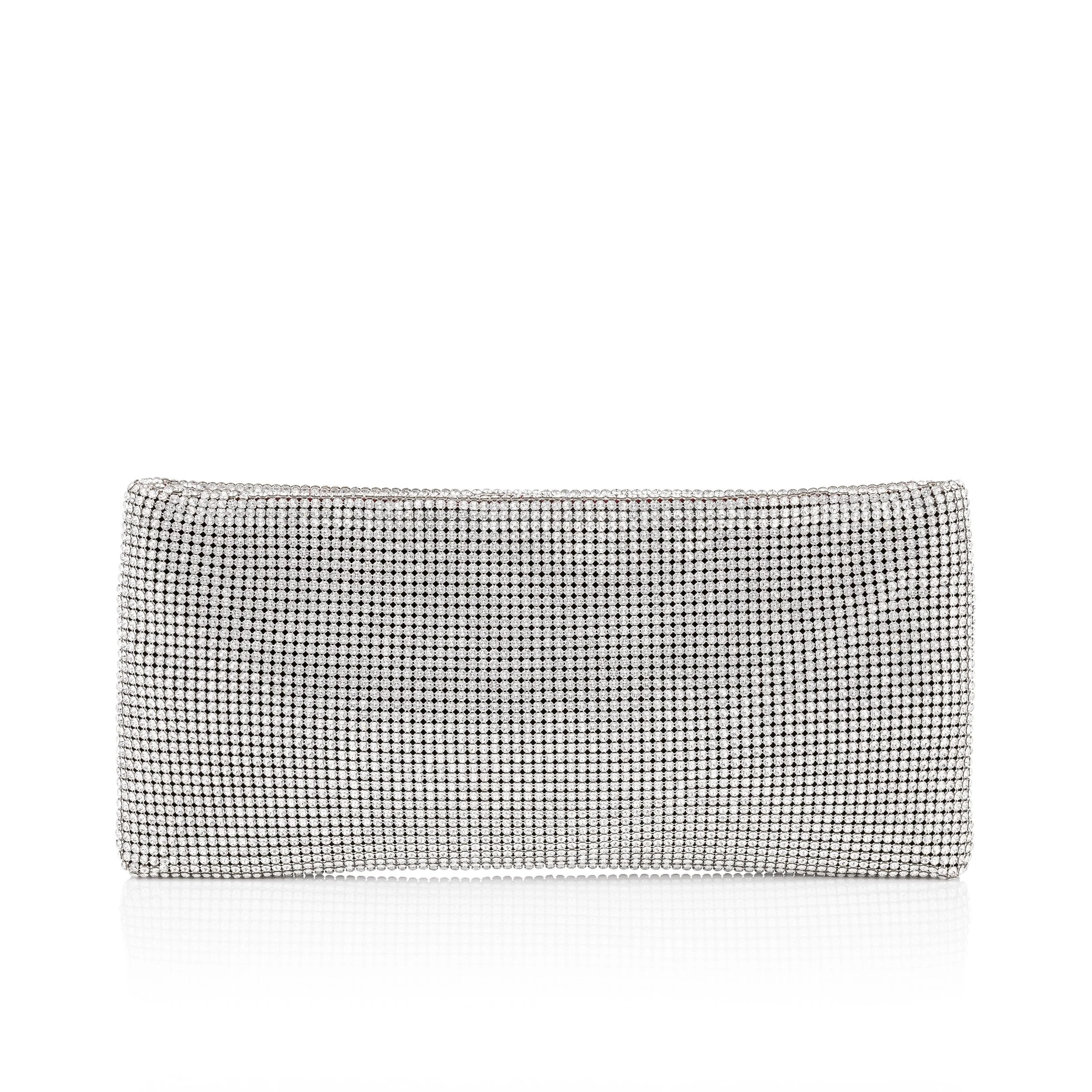 A decadent clutch pouch embellished in Maison Christian Louboutin silver crystals to create an impression on any occasion. Made from creative fabric and featuring a zipper fastening, this is the perfect clutch to keep valuables safe. -1 main compartment - 1 flat pocket H 4.5 x L 10 x W 1 inches Product information Reference: 1255034S025 Color: Silver Material: Mesh Dimensions: 120mm x 250mm x 20mm