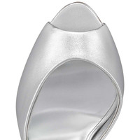 Inspired by Dolly Parton, the cute retro Me Dolly mule has been reworked with a new heel height. This stunning model from the Dolly collection has a wide almond-shaped peep-toe construction and Maison Christian Louboutin’s signature 100 mm 'fetish' heel. The upper is crafted in stunning silver laminated leather, which is further enhanced by a tonal silver lining. Product information Material: Nappa leather Color: Silver Reference: 1221389S211 Heel height: 100 mm Collection: Fall Winter 22