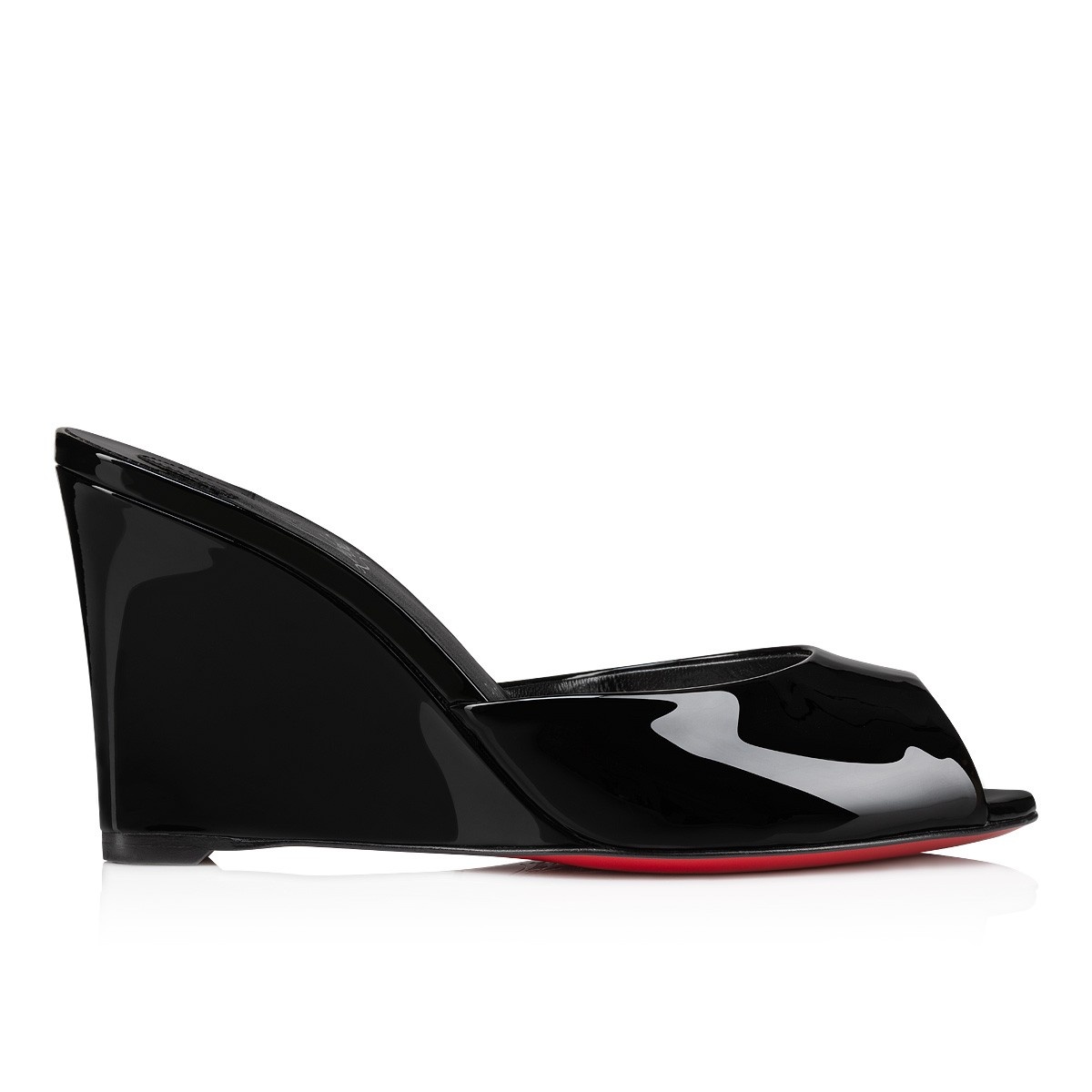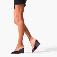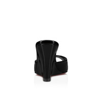 An audacious version of the Me Dolly pump, Maison Christian Louboutin's Me Dolly Zeppa sandal has the same retro style and wide almond-shaped toe as its namesake. This model features an on-trend 85 mm wedge heel, coated in patent leather to match the upper. It is crafted in glossy back adding a hint of sophistication to any look. Product information Material: Patent leather Color: Black Reference: 3230054B439 Heel height: 85 mm Collection: Fall Winter 23