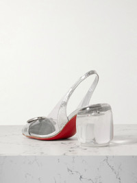 Clear, rounded block heels earn Christian Louboutin's innovative 'Minny Bubble' pumps their namesake. They've been crafted in Italy from glossed synthetic material and PVC that creates a cool illusion and have silver-tone buckles and slingback straps. Size & Fit - Fits true to size, take your normal size - Italian sizing Details & Care - Heel measures approximately 70mm/ 3 inches - Clear PVC, silver glossed synthetic material - Elasticated slingback strap