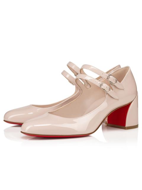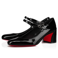 The timeless Miss Jane model is distinguished by its sophisticated style. Inspired by T-bar sandals, this Maison Christian Louboutin shoe is set on a 55 mm heel. It is designed in black patent calfskin leather and features two silver straps that dress the instep with charm and elegance. Product information Material: Patent calf leather Color: Black Reference: 1220145B439 Heel height: 55 mm Collection: Summer 22