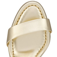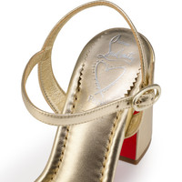 The Miss Jane Sandal is distinguished by its bevelled square 85 mm heel and padded insole. Crafted from Platine silver laminated nappa leather, it has a rounded toe, a low-cut vamp that reveals the foot, and slender ankle straps. This wedding collection model features the Christian Louboutin logo and heart stamp on the insole. Product information Reference: 1260391G306 Color: Platine Material: Laminated calf leather Heel Height: 85 mm