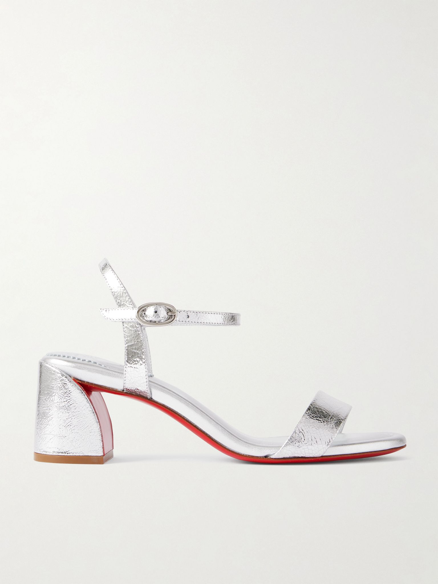 Christian Louboutin's 'Miss Jane' sandals strike the perfect balance between comfort and style. They've been made in Italy from supple metallic textured-leather and set on sculptural 55mm block heels. Size & Fit - Fits true to size, take your normal size - Italian sizing Details & Care - Heel measures approximately 55mm/ 2 inches - Silver metallic textured-leather (Calf) - Buckle-fastening straps