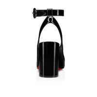 A summery model with sleek lines, the Miss Sab Sling sandal features an 85 mm asymmetrical heel. The straps are attached behind the ankles and are adorned with delicate rounded clasps. Entirely crafted in black patent calf leather with discreet topstitching, it showcases Maison Christian Louboutin's creativity and expertise. PRODUCT INFORMATION Reference: 3220023B439 Color: Black Material: Patent leather Heel Height: 85 mm Collection: Fall Winter 22