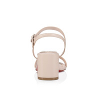 The elegant Miss Jane Sandal features a rounded open-toe and Maison Christian Louboutin’s daring low-cut vamp, revealing a glimpse of the toe. It has a 55 mm, easy-to-wear block heel and two slender straps that fasten to the side of the foot with two circular buttons. This model is crafted in soft Leche beige leather for a timeless look that is both subtle and sophisticated. Product information Material: Nappa leather Color: Leche Reference: 1240703F608 Heel height: 55 mm Collection: Summer 24