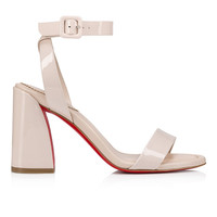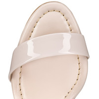 The iconic Miss Sabina is back, with its 85 mm signature Turela heel. The curvy lines of this sandal reveal Maison Christian Louboutin's emblematic red sole to its full effect. This style is ideal for all-day wear. It features an elegant strap across the toe and another winding around the ankle and fastening with a buckle. It is crafted in Leche beige patent leather with tonal lining. Product information Material: Patent calf leather Color: Leche Reference: 3230530F608 Heel height: 85 mm Collection: Fall Winter 23