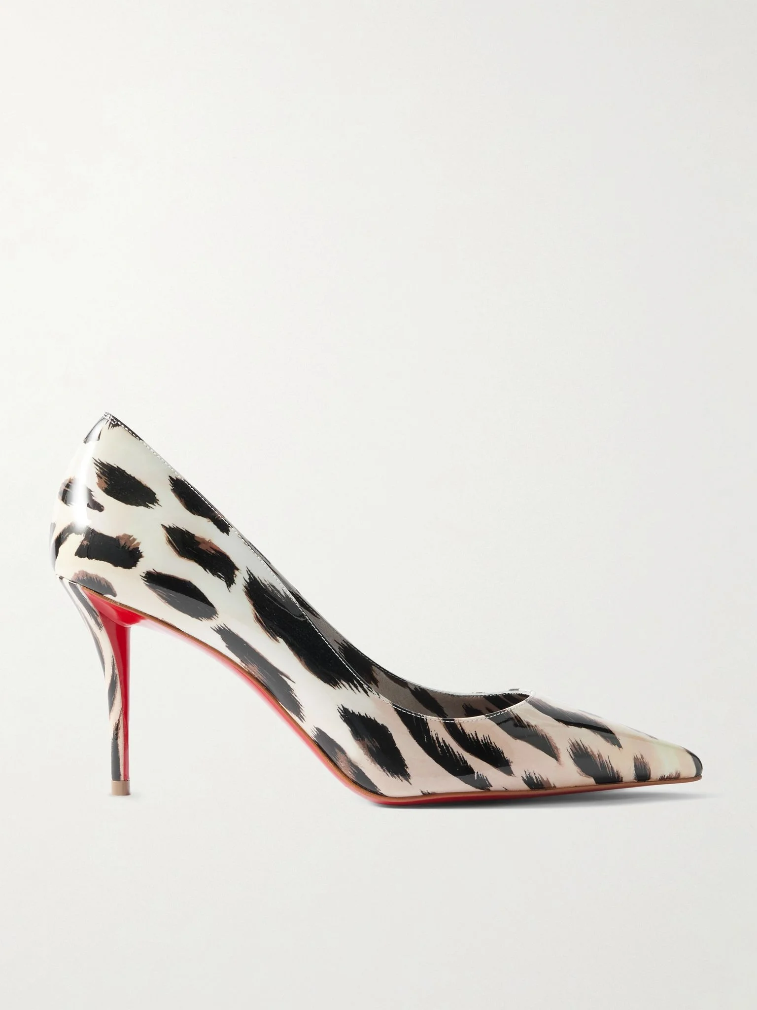 Christian Louboutin's 'Gigi' pumps are part of the modern 'Miss Z' collection, which is defined by sharply pointed toes and sculptural heels that showcase the iconic red sole. They're made from leopard-print patent-leather with a glossy finish. Size & Fit - Fits true to size, take your normal size - Italian sizing Details & Care - Heel measures approximately 80mm/ 3 inches - White, beige and tonal-brown patent-leather - Slip on