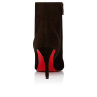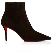 The Miss Z Booty is an elegant ankle boot sculpted in a timeless design with a daring pointed toe that expresses Maison Christian Louboutin's iconic savoir-faire. Set on an 80 mm cleverly designed stiletto heel that appears higher than it is and reveals the Loubi red of the iconic sole, the Miss Z Booty is crafted from Cafe brown veau velours, and features a fully padded insole. This model features a new 'Everlasting Red' sole thanks to an innovative coating technique that ensures resistance and lasting vibrancy for our signature Louboutin red. Product information Reference: 32506407164 Color: Cafe Material: Veau velours Heel Height: 80 mm