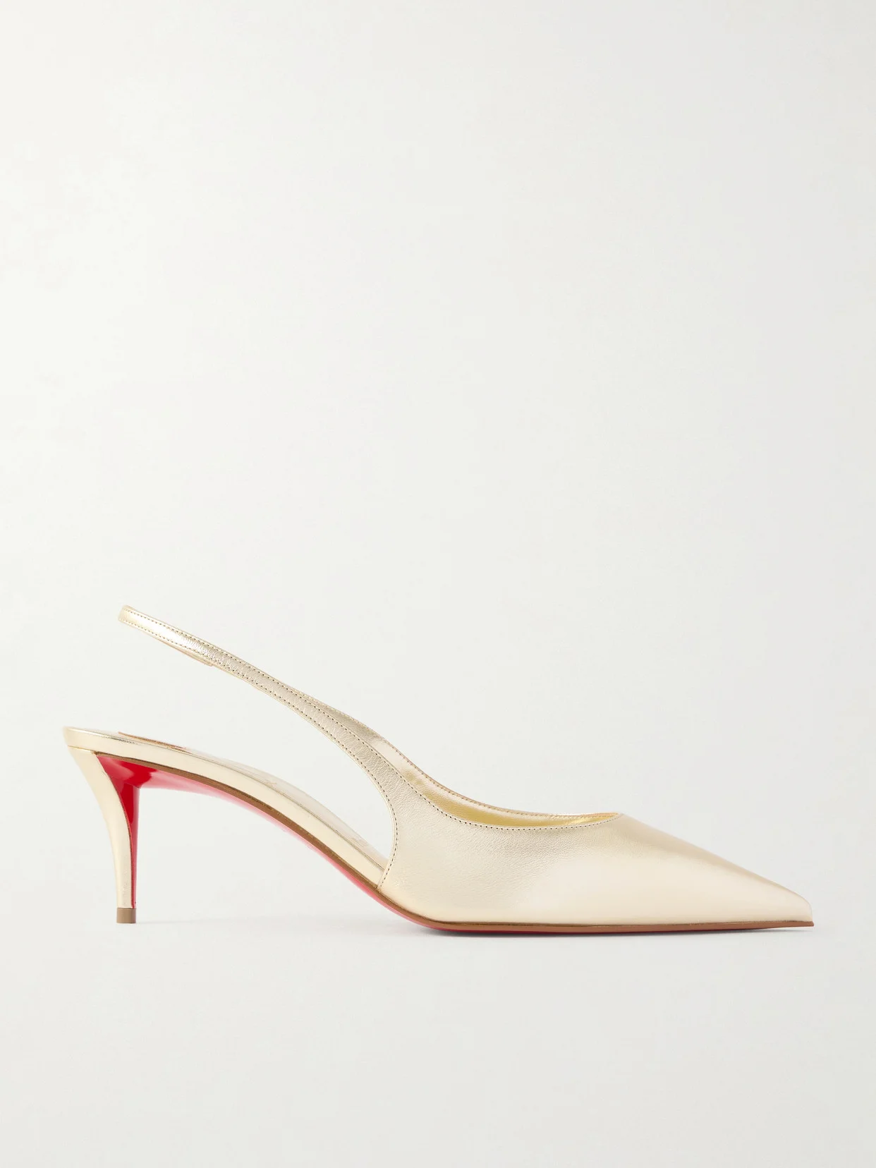 Christian Louboutin's 'Miss Z' slingbacks pair effortlessly with the evening dresses in your wardrobe. Crafted from gold-toned metallic leather, they feature a sleek pointed toe and rest on 60mm heels for a comfortable lift.