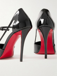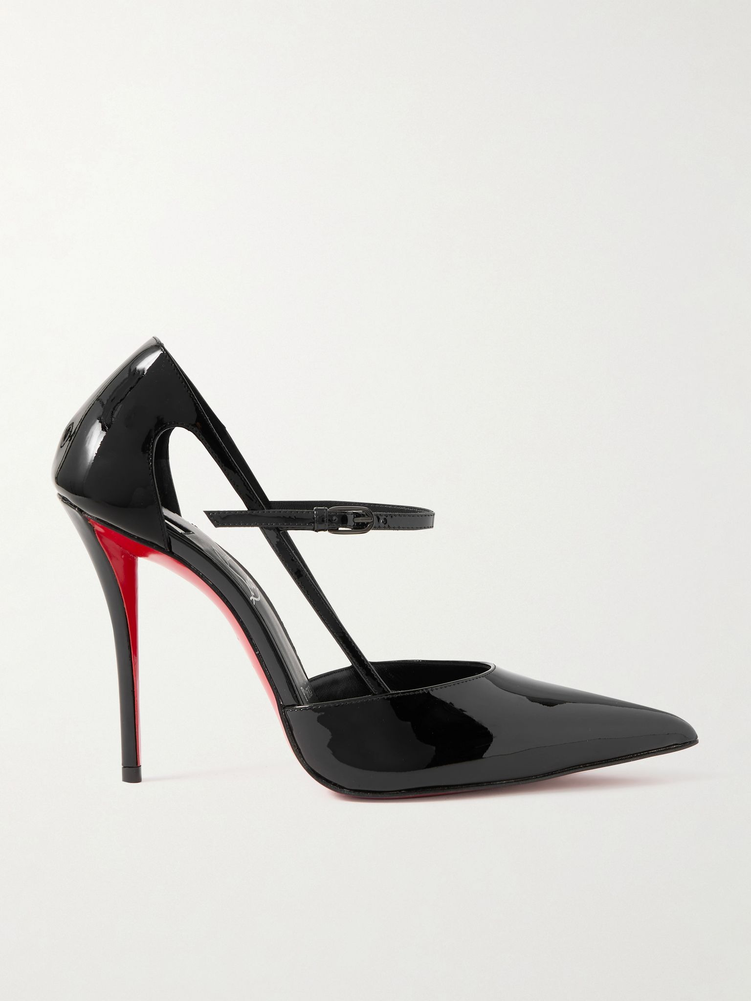 Christian Louboutin's 'Miss Z' pumps have cutaway 100mm heels that showcase the brand's signature red soles. They're crafted from shiny patent-leather and have slim straps that create foot-baring cutouts along the sides. Size & Fit - Fits true to size, take your normal size - Italian sizing Details & Care - Heel measures approximately 100mm/ 4 inches - Black patent-leather (Calf) - Buckle-fastening strap