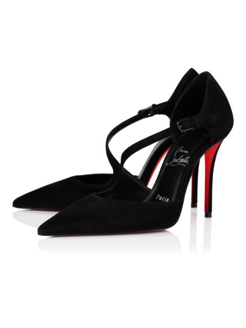 The tapered silhouette of the Miss Z pump ensures a sophisticated style. Set on a 100 mm stiletto heel that reveals the iconic Loubi red sole, this Maison Christian Louboutin model is crafted from black veau velours. This shoe has an elegant decollete trimmed with an asymmetrical strap, and also features a padded insole. This model features a new 'Everlasting Red' sole thanks to an innovative coating technique that ensures resistance and lasting vibrancy for our signature Louboutin red. Product information Reference: 3250637BK01 Color: Black Material: Veau velours Heel Height: 100 mm