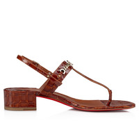 The sleek MJ Thong sandal features a chain adorned with the iconic Maison Christian Louboutin CL logo. This style showcases a rounded toe and slender straps. It is set on a 25 mm heel and crafted in chestnut brown, alligator embossed calf leather. Product information Material: Calf leather Color: Acajou Reference: 32401887019 Heel height: 25 mm Collection: Fall Winter 24