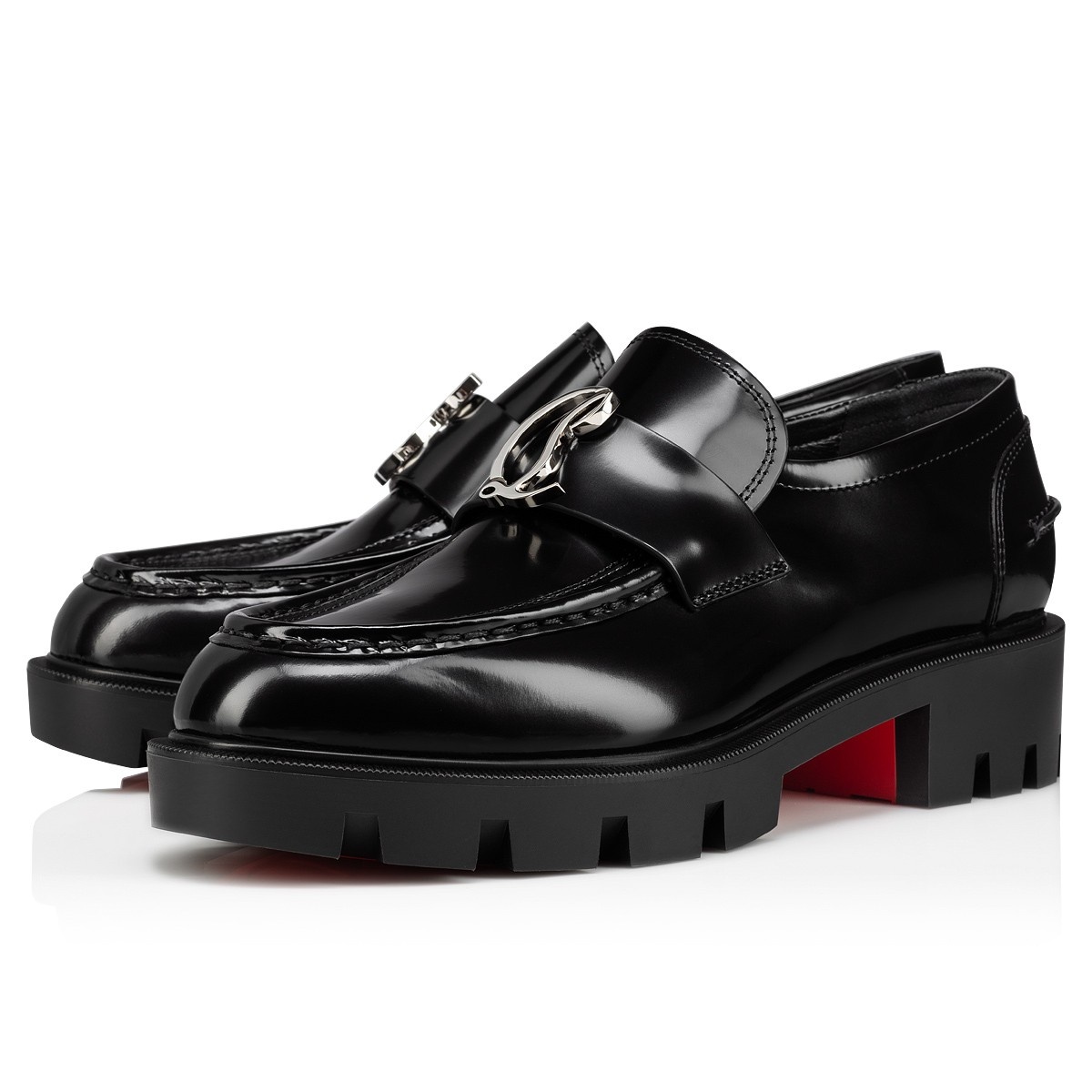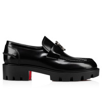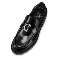 A testament to Maison Christian Louboutin's expertise, the CL Moc Lug loafer features traditional design enhanced with graphic topstitching. This urban style has a lug sole for a modern appeal and is crafted in black abrasivato leather. A sleek, sophisticated model, the upper features a band adorned with a silver metal CL monogram. Product information Material: Calf leather Color: Black Reference: 3221081B439 Collection: Fall Winter 22