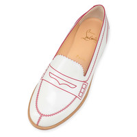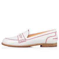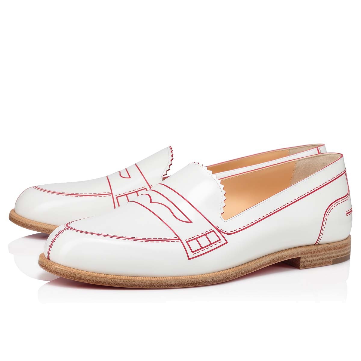 The urban style Mocalauréat moccasin stands out for its serrated tongue and original "optical illusion" patterns that enhance it like a tattoo. It is set on a wooden sole and made entirely of abrasivato white calfskin, while its timelessly elegant upper is enhanced with delicate finishes. A sophisticated model that demonstrates the Maison Christian Louboutin know-how.