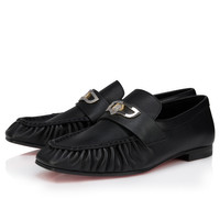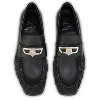 The Mocallista loafer has a refined design. Crafted in black lamb nappa leather, this Maison Christian Louboutin model features a tongue adorned with a silver bar that holds a coin stamped with the Maison logo, and is defined by its pleated detailing at the front. Product information Reference: 1260176B439 Color: Black Material: Lamb nappa leather