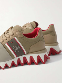 EDITORS'NOTES The bold 'Nastroshark' sneakers could only come from the creative mind of Christian Louboutin. Made from canvas and leather, with suede toe caps, they rest on striking 'shark teeth' serrated soles with signature red bases. The label's iconic logo is embroidered on grosgrain trims at the sides. SIZE & FIT - Fits true to size, take your normal size - Italian sizing DETAILS & CARE - Sole measures approximately 40mm/ 1.5 inches - Mushroom canvas, beige leather and suede (Calf), red, brown and white grosgrain - Lace-up front