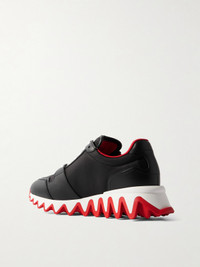 The bold 'Nastroshark' sneakers could only come from the creative mind of Christian Louboutin. Made from black shell and leather, they rest on striking 'shark teeth' serrated soles with signature red bases. The label's iconic logo is embroidered on grosgrain trims at the sides.