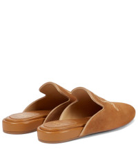 From Christian Louboutin's exclusive Nudes range, the Navy Coolito Donna slippers come in a spectrum of shades. Designed for Mytheresa, this pair in camel brown – the fourth hue of the collection – is made from soft suede with lambskin leather linings and logo-embroidered vamps. Product Details - exclusive to mytheresa.com - Lining: leather - Toe shape: round toe - Sole: leather insole, signature red leather sole - Upper: leather - Made in Italy - Item number: P00606987 Size & Fit - Fits slightly large to size - we recommend trying a half size smaller - European sizes - 3cm-1" wedge heel (size EU 38)