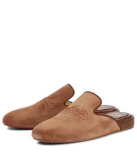 From Christian Louboutin's exclusive Nudes range, the Navy Coolito Donna slippers come in a spectrum of shades. Designed for Mytheresa, this pair in caramel brown – the sixth hue of the collection – is made from soft suede with lambskin leather linings and logo-embroidered vamps. Product Details - exclusive to mytheresa.com - Lining: leather - Toe shape: round toe - Upper: calf leather, lamb leather - Sole: leather insole, signature red leather sole - Made in Italy - Item number: P00606989 Size & Fit - Fits slightly large to size - we recommend trying a half size smaller - European sizes - 3cm-1" wedge heel (size EU 38)