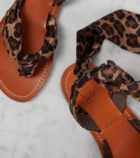 Embrace your fierce side with styles from Christian Louboutin’s Exclusive FW23 Capsule Collection for Mytheresa. Set on leather soles, the Niloo du Désert sandals feature knotted thong straps and wrap-around ankle ties in leopard-print satin. Product Details - Toe shape: round open toe - Upper: fabric - Sole: leather insole, signature red leather sole - Made in Spain - Comes with dust bags - Comes with a box - Item number: P00813265 Size & Fit - True to size - European sizes