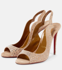 The Degrachick sandals from Christian Louboutin's Nudes collection are a glamorous take on the long-iconic Hot Chick design. Made from smooth suede in the third-lightest of eight hues, they feature tonal crystals and notched slingbacks. Product Details - Toe shape: round open toe - Lining: leather - Sole: leather insole, signature red leather sole - Closure: ankle strap - Comes with a box - Made in Italy - exclusive to mytheresa.com - Upper: leather - Comes with dust bags - Item number: P00717815 Size & Fit - Fits slightly small to size - we recommend trying a half size larger - European sizes - 10cm-4" heel (size EU 38)